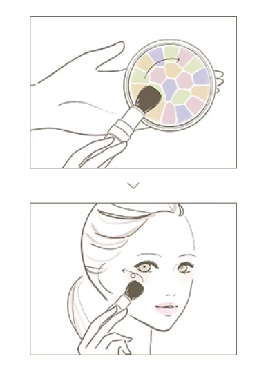 ラ プードルの上にパフをあて、パフを45度ほど回転させ、5色のペールカラーがほどよくブレンドされるようにお粉をとります。