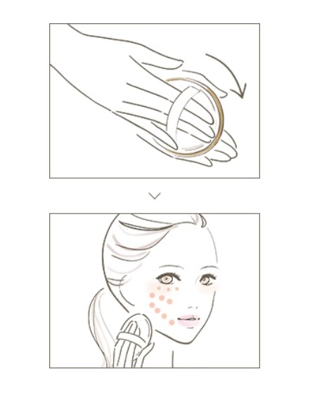 肌にのせるときは、あご先かららせんを描くようにお顔全体につけてゆきます。